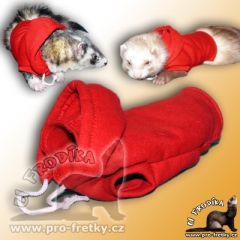 Bundička je vyrobena z jemné bavlny a fleece, materiálu navržena speciálně pro fretky a jiná malá zvířata. Různé barvy.
