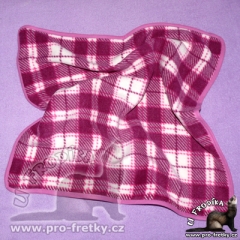 Fleecová deka přímo pro fretky. Vhodná do pelíšku nebo přepravky, či cestovní tašky. Rozměry: 52 x 52 cm, 40 x 40 cm a 49 x 39 cm.